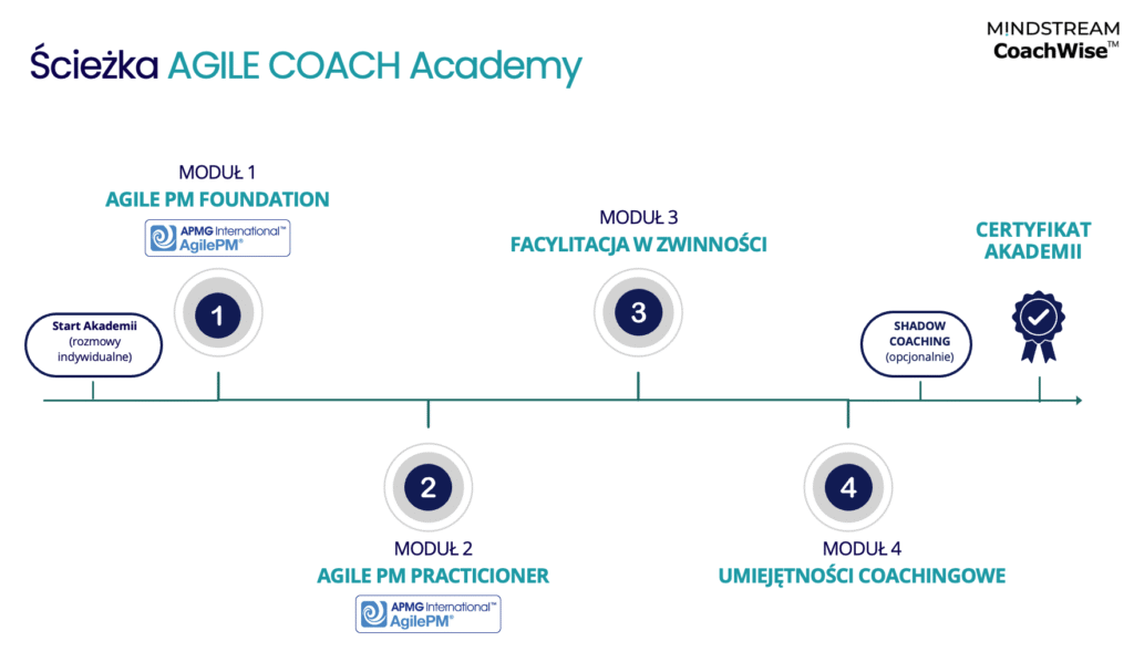 - Dowiesz się, jak prowadzić transformację Agile, by była trwała i dobrze odbierana przez ludzi. Nauczysz się, jak budować autorytet, inspirować, wspierać rozwój zespołów i organizacji tak, by Twoja praca jako Agile Coacha miała realny, pozytywny wpływ.